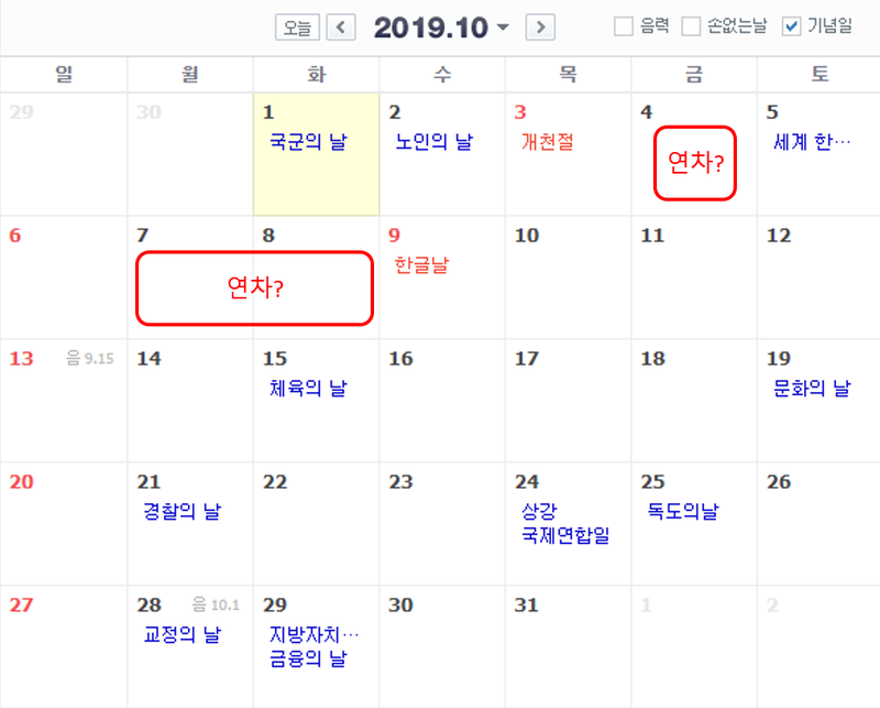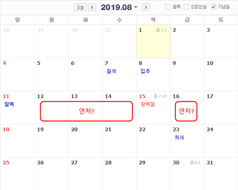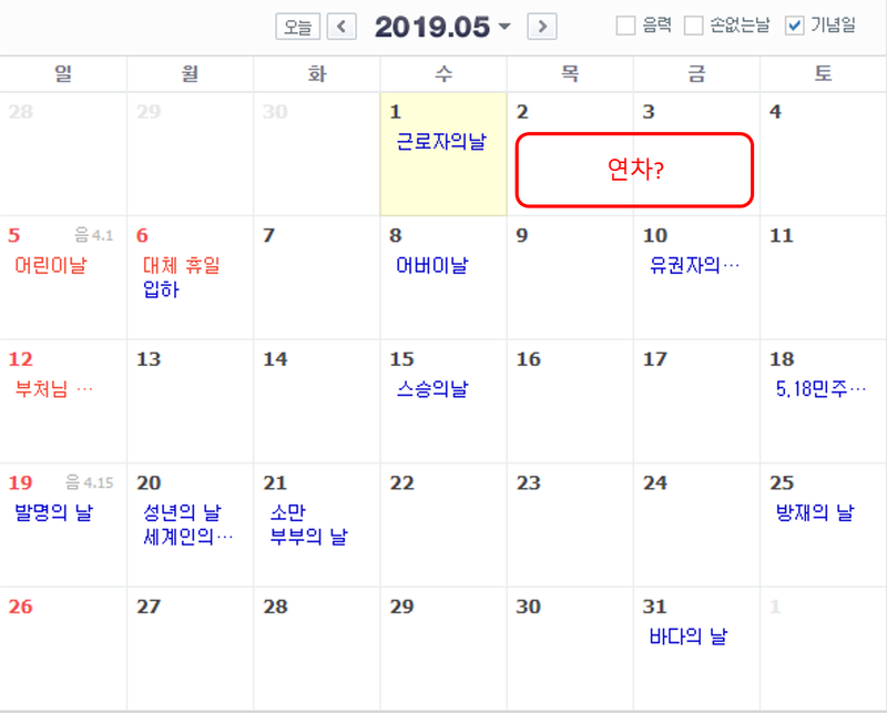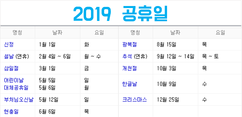 | Á¦¸ñ | 2019 °øÈÞÀÏ, ¿¬ÈÞ ÃÑÁ¤¸® |
